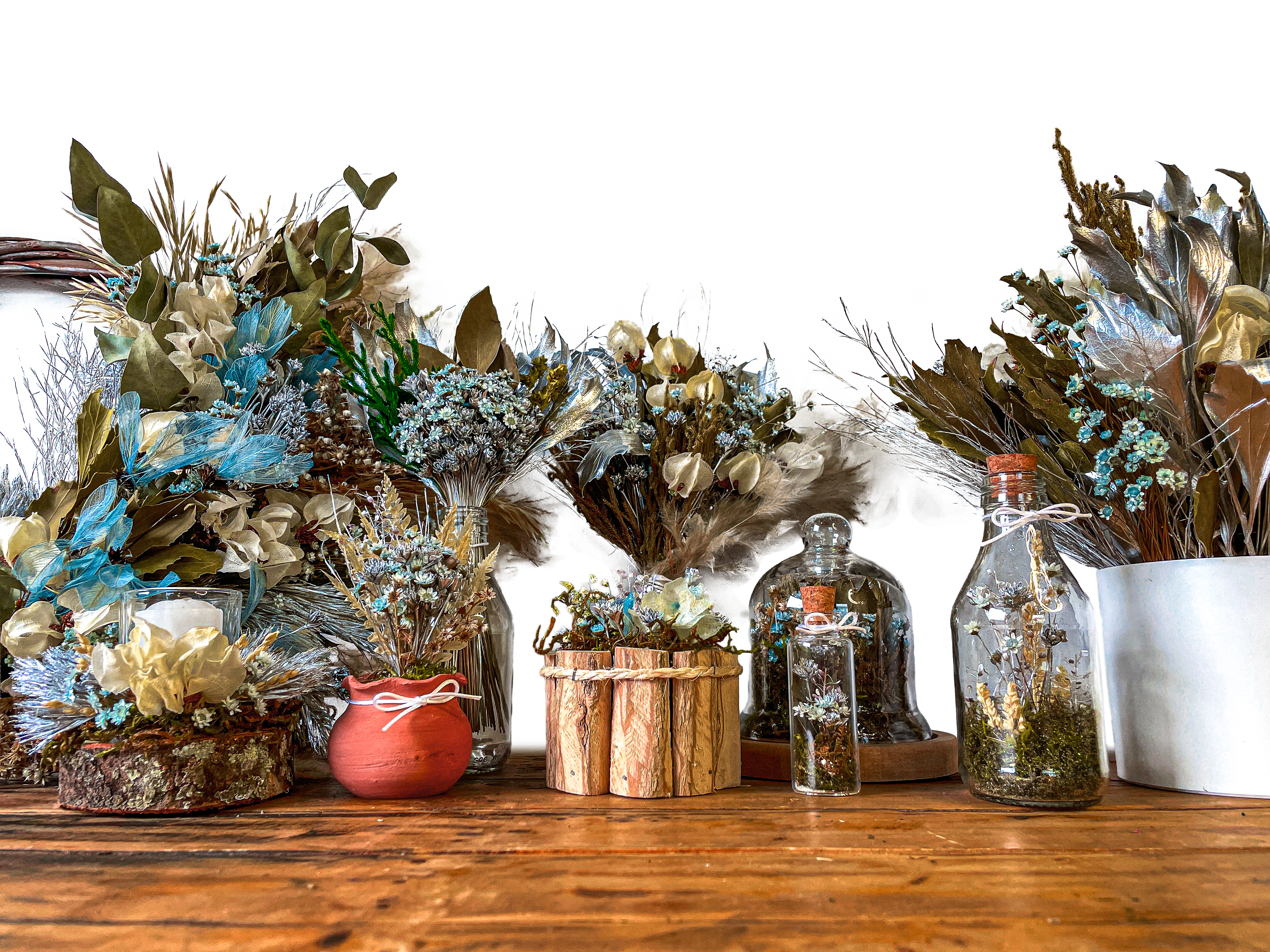 As nossas Coleções de Natal incluem itens de outras coleções mas dentro das paletas como Jardins preservados, Cúpulas, e Mini Buquês, mas também incuímos algumas novidades como os Porta Velas, o Arranjo Pinheiro, e as Guirlandas Rústicas.